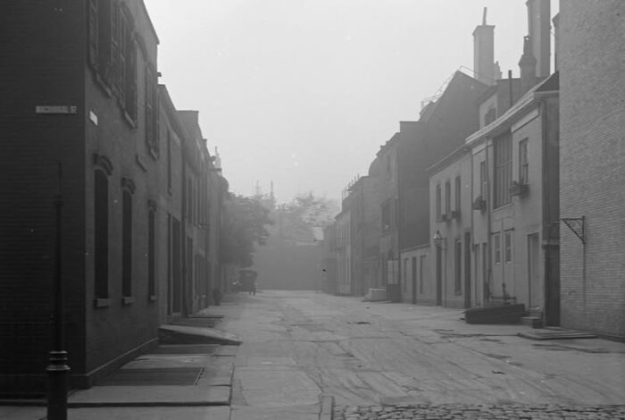 A little alley off MacDougal Street called MacDougal Alley. I’m not sure if the alley is public or private, but those gates are normally closed and locked. The woman and the dog turn out to live in my building.