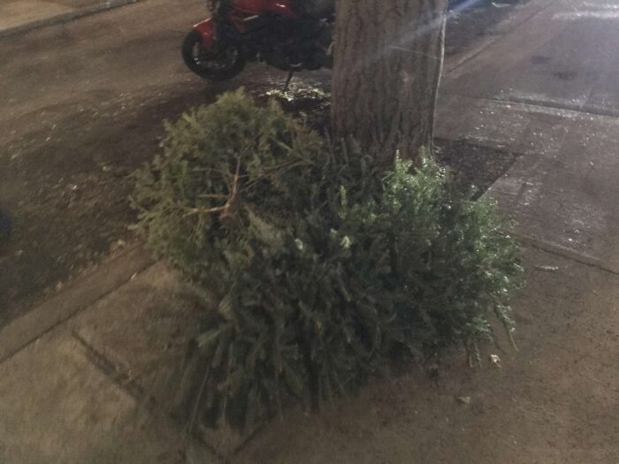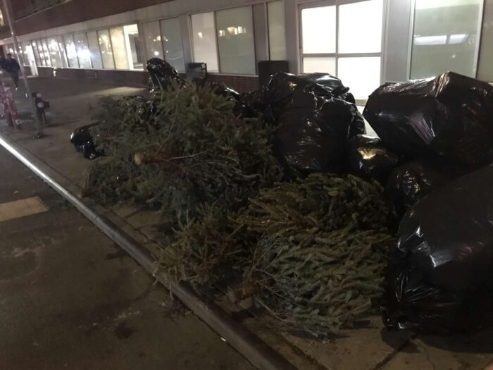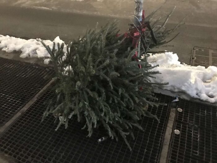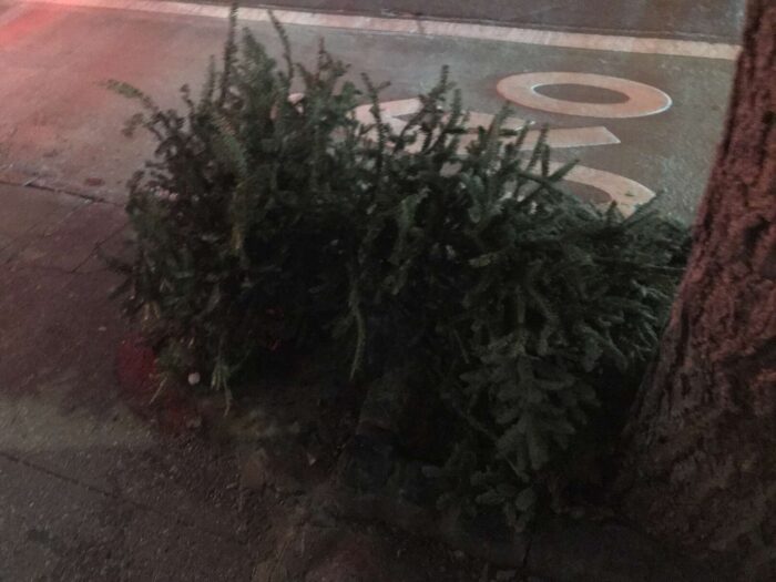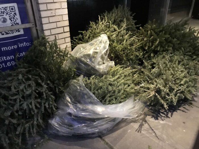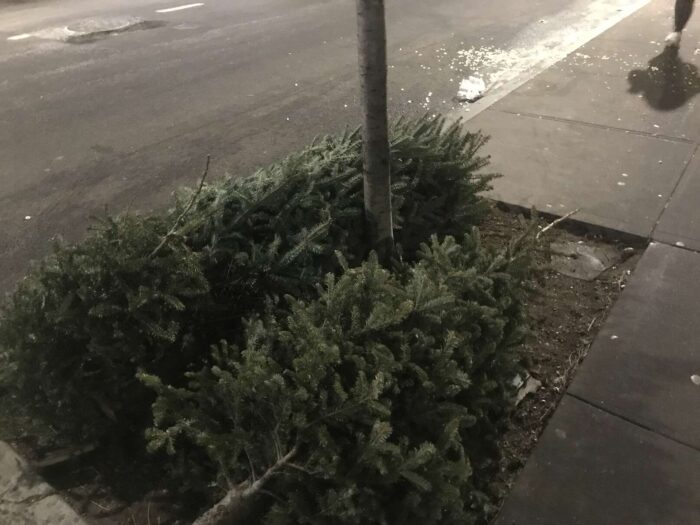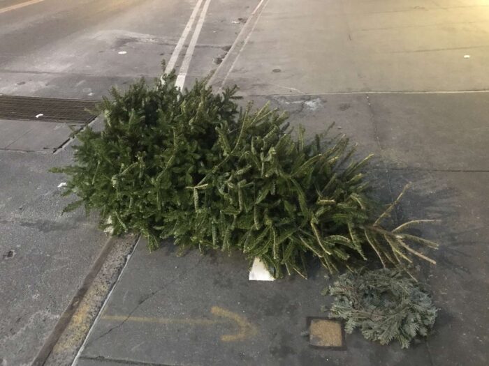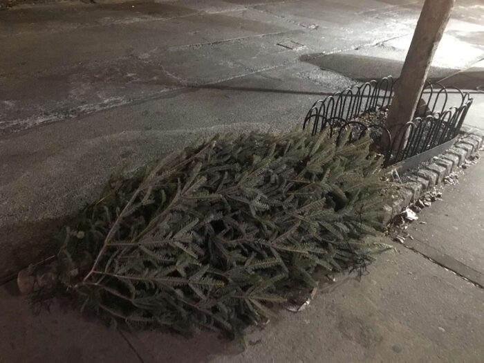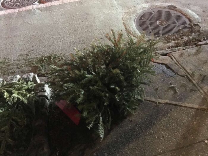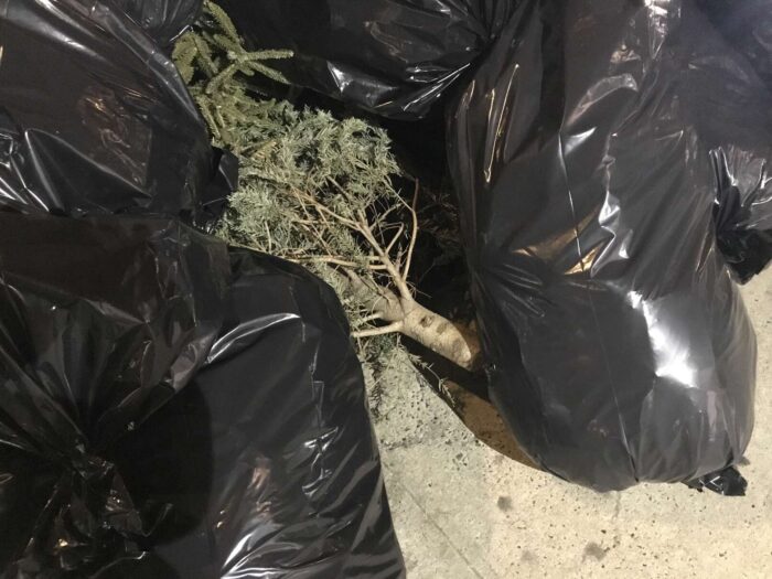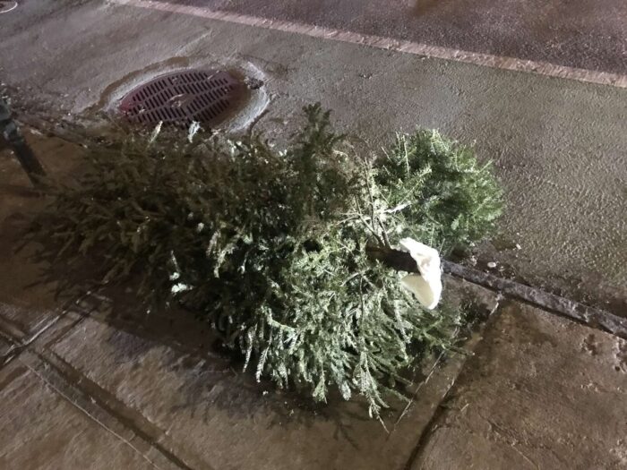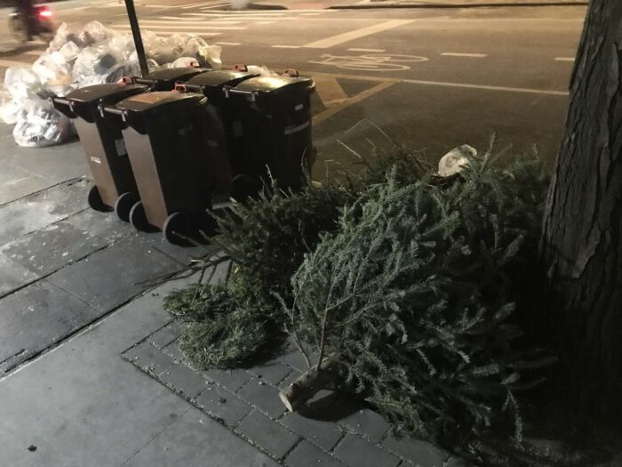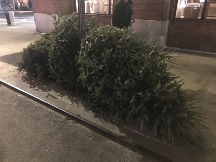 Two months of Christmas pagan trees, hundreds of trees, thrown away