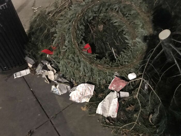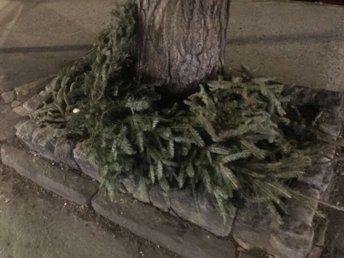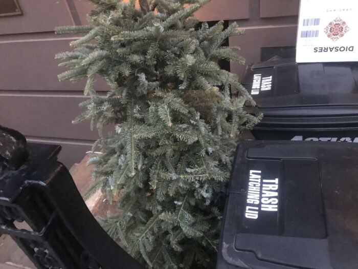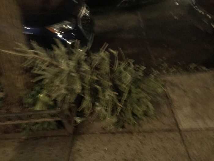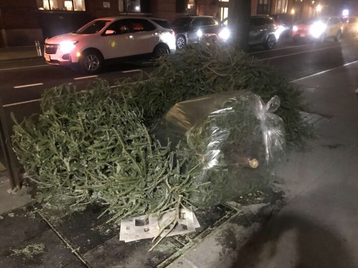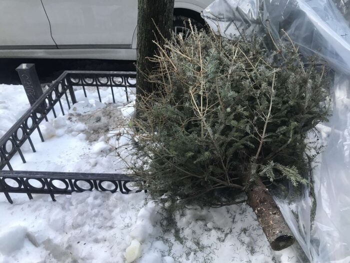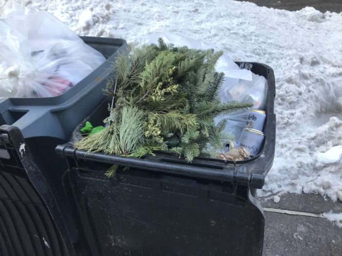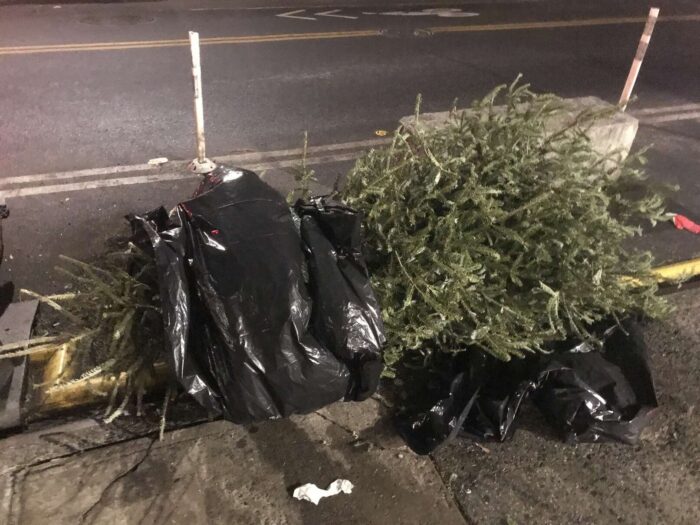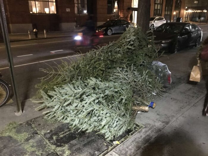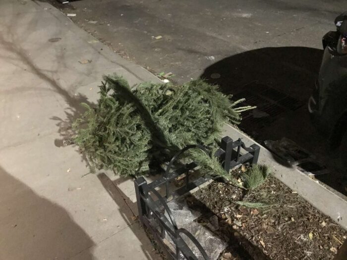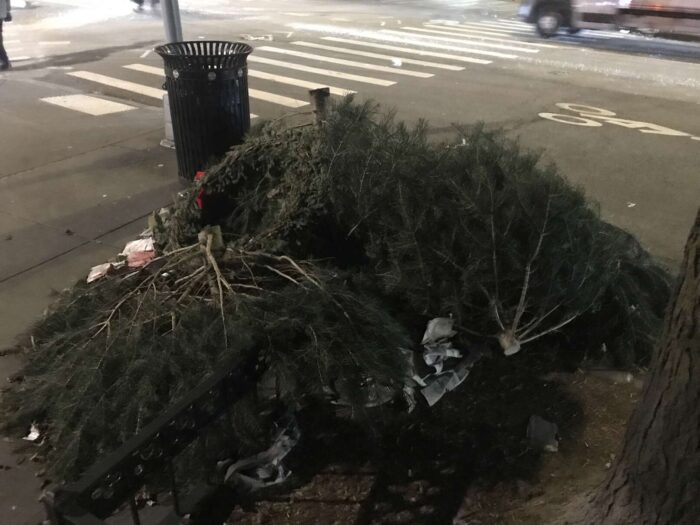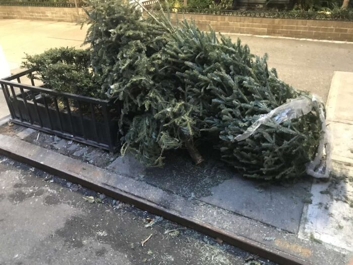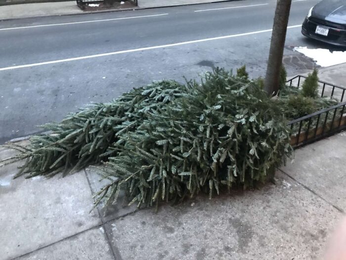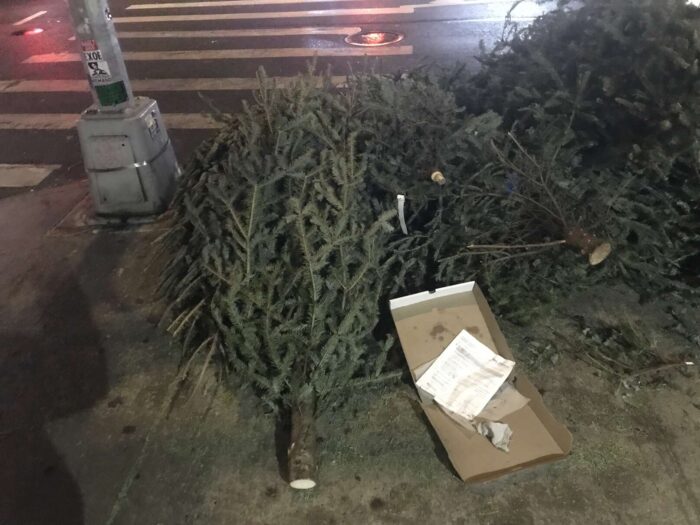 Two months of Christmas pagan trees, hundreds of trees, thrown away