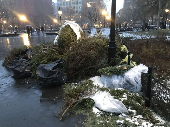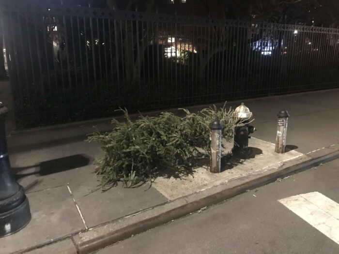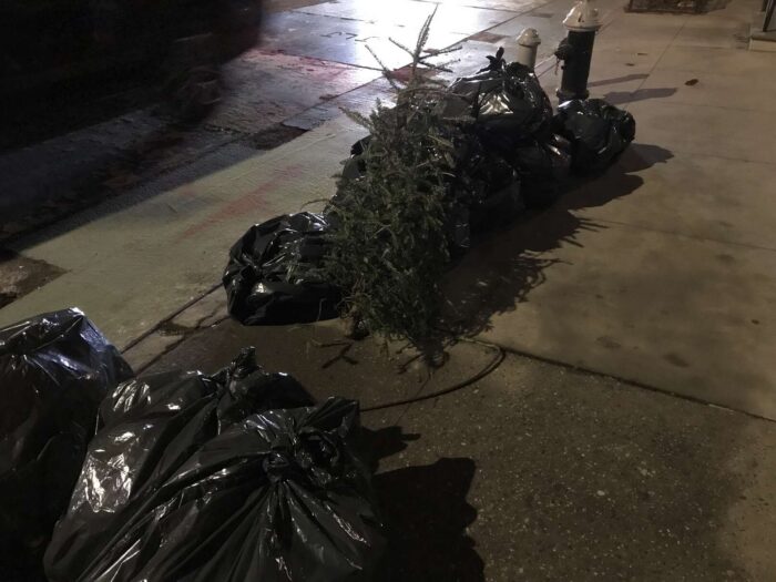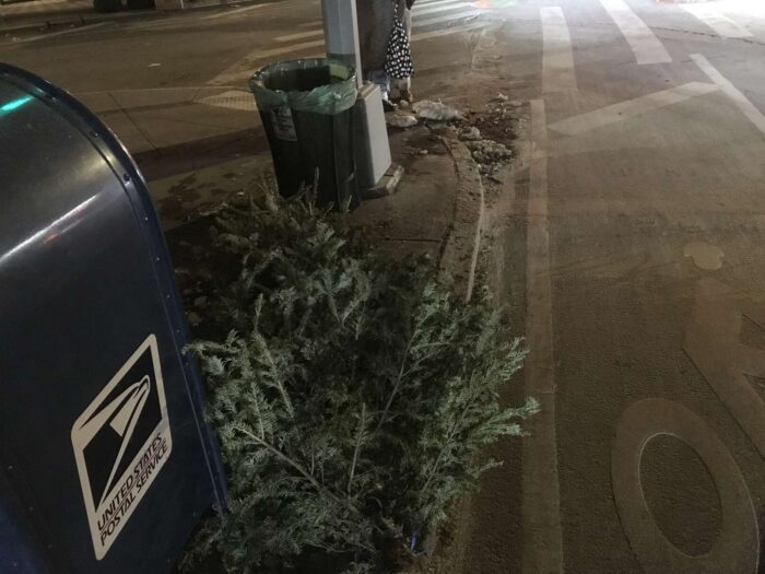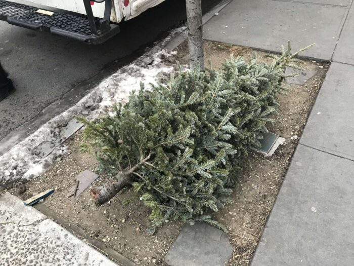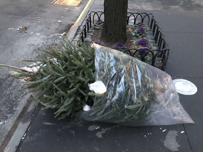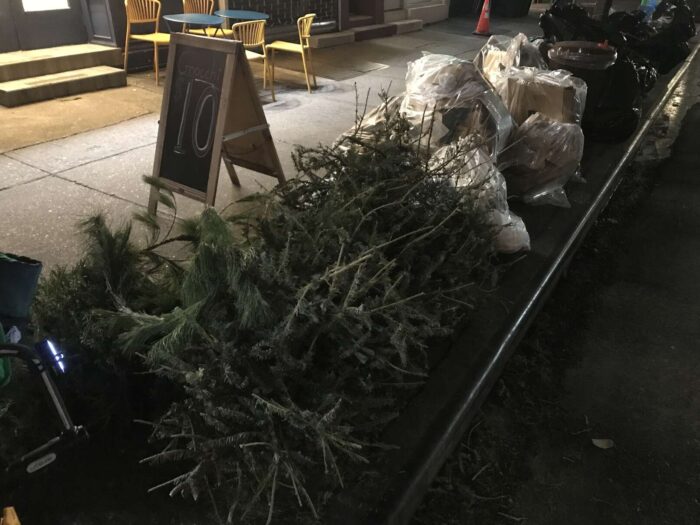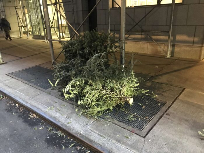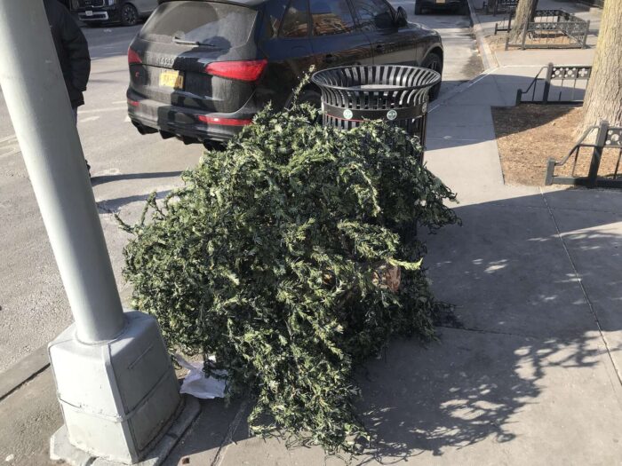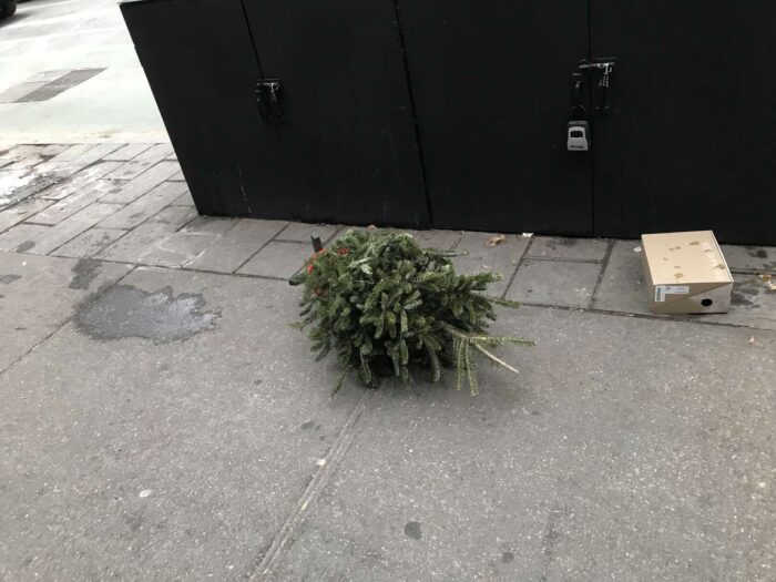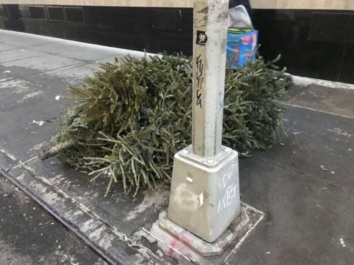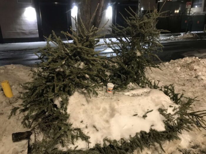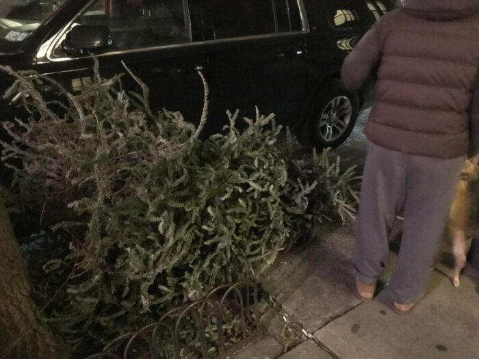 Two months of Christmas pagan trees, hundreds of trees, thrown away