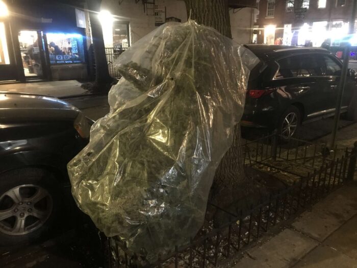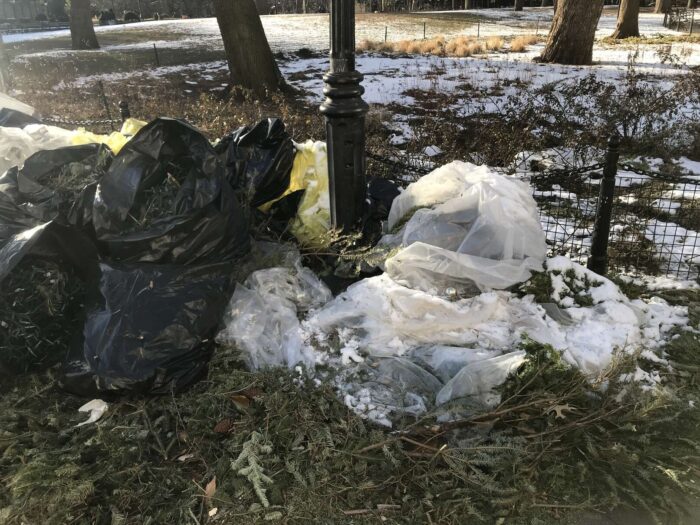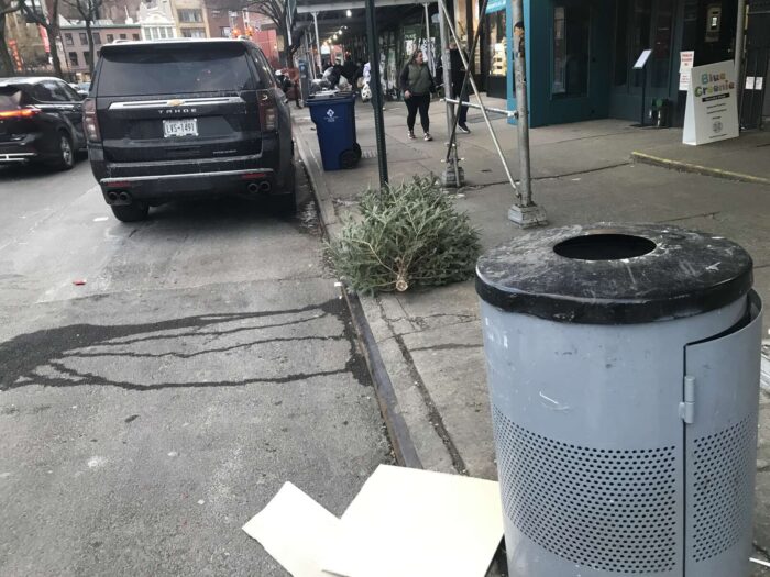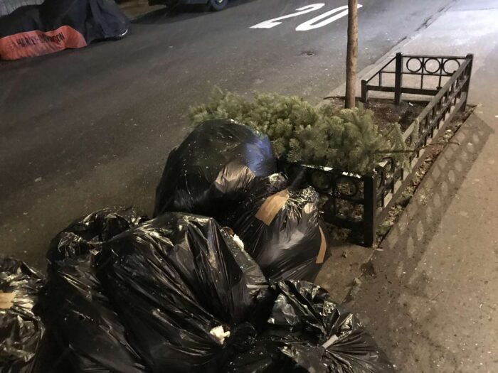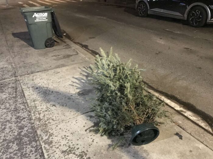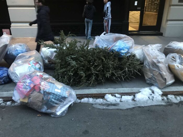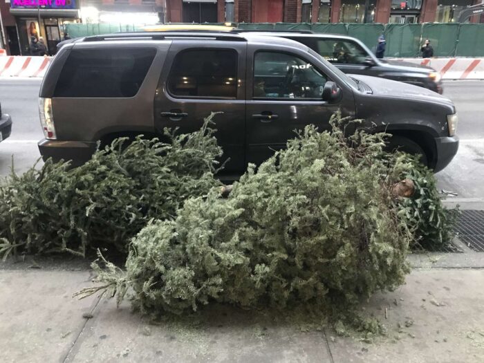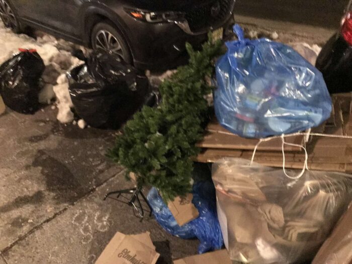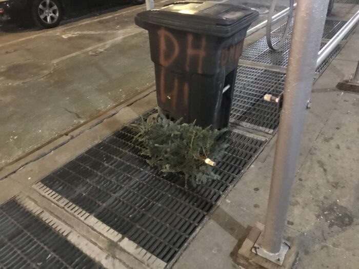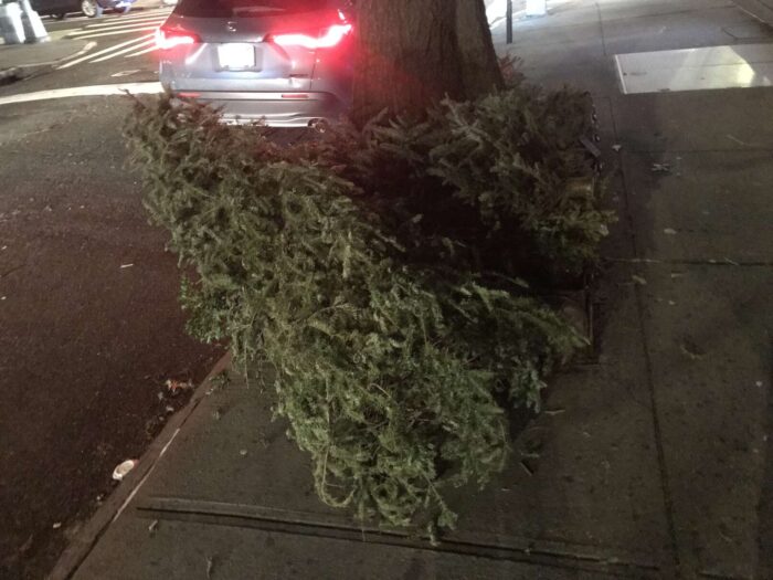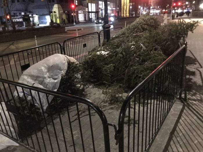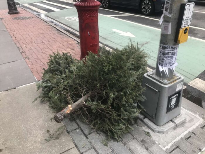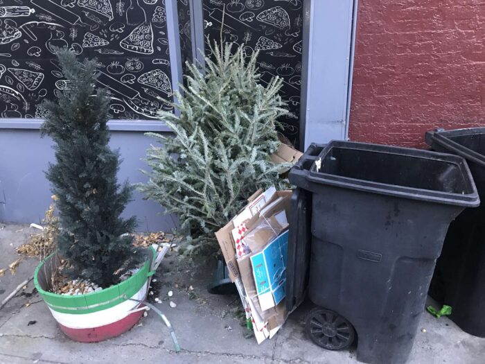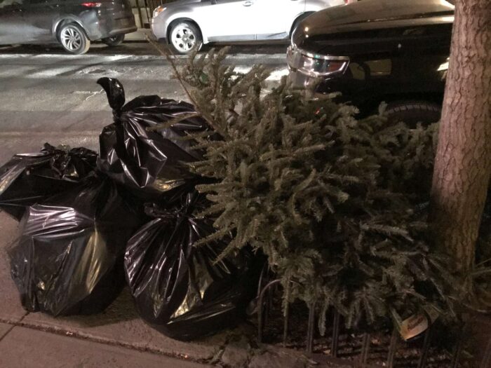 Two months of Christmas pagan trees, hundreds of trees, thrown away