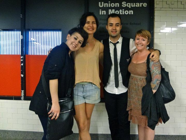 Four of the artists: Jaqi, Hilal, Umut, and Jeanne. Josefina was probably being interviewed by NY1 and Rose was on her way.