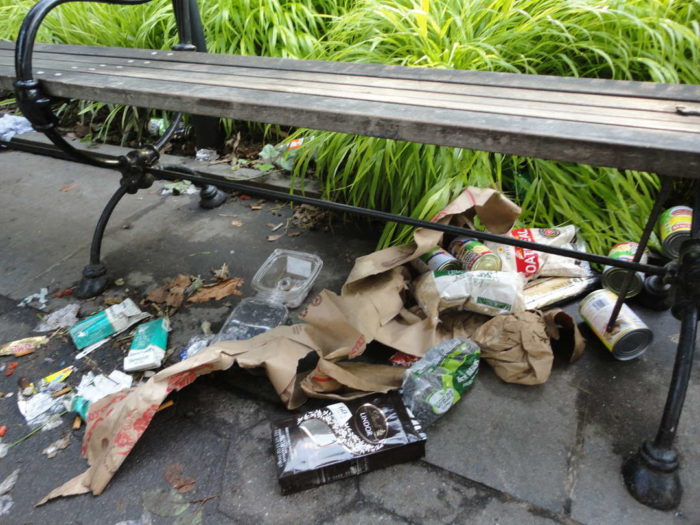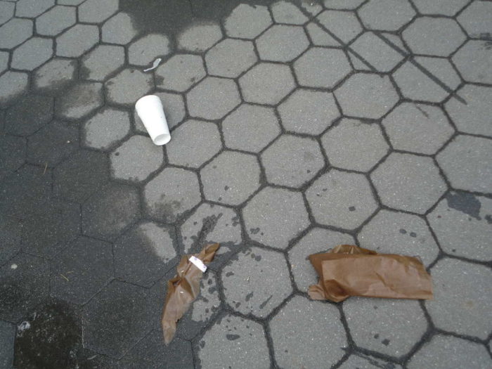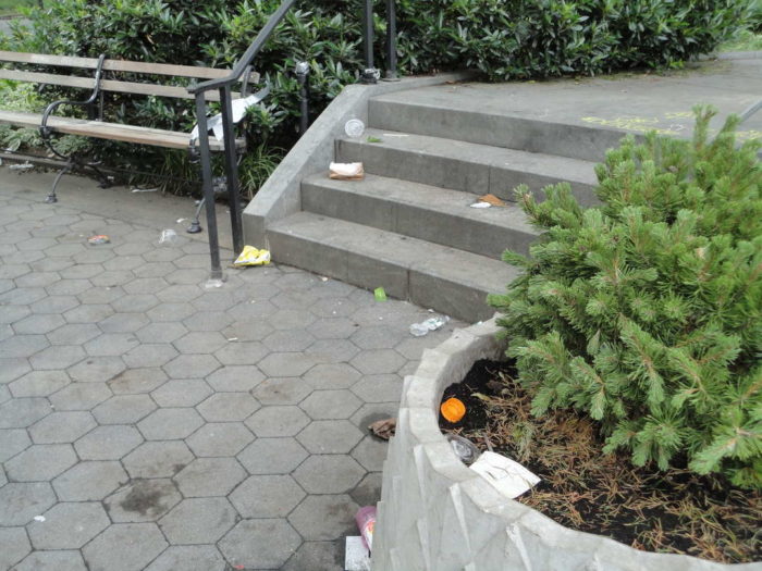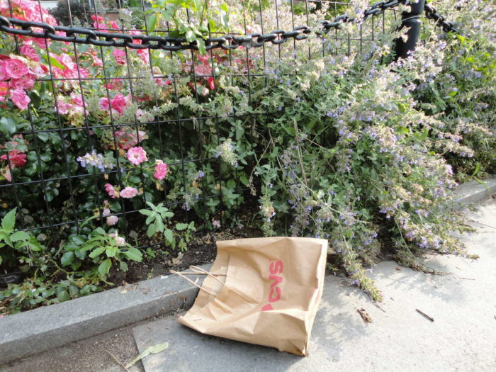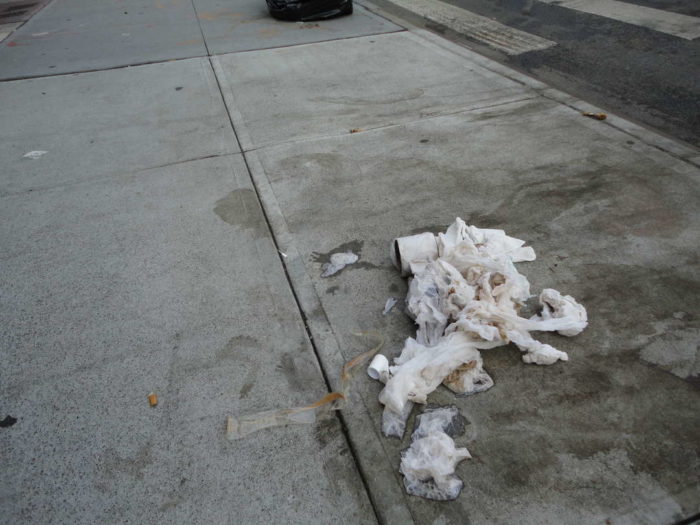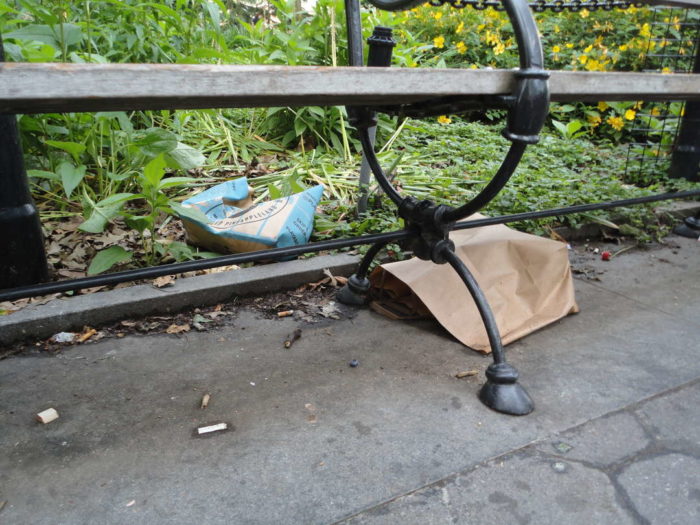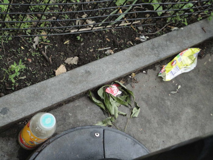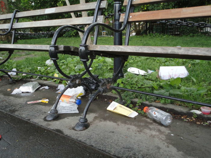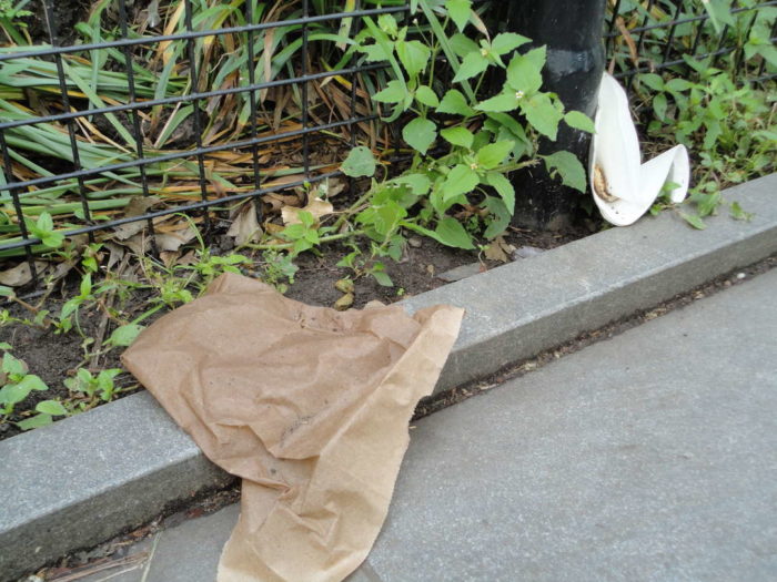 I live around the corner and have gone there daily without fail for over a year to pick up litter, forming relationships with some of the dealers and users. Mostly to perform what I consider a civic duty and what any member of a community would do. As best I can tell, I’m the only person who picks up litter, in contrast to the 75 percent at least who bring packaging that will become litter or contribute to overflowing trash cans whose contents spill out and become litter.