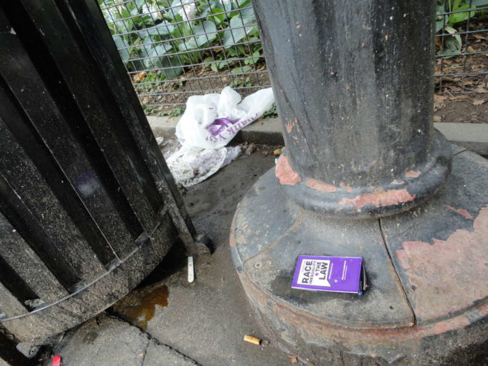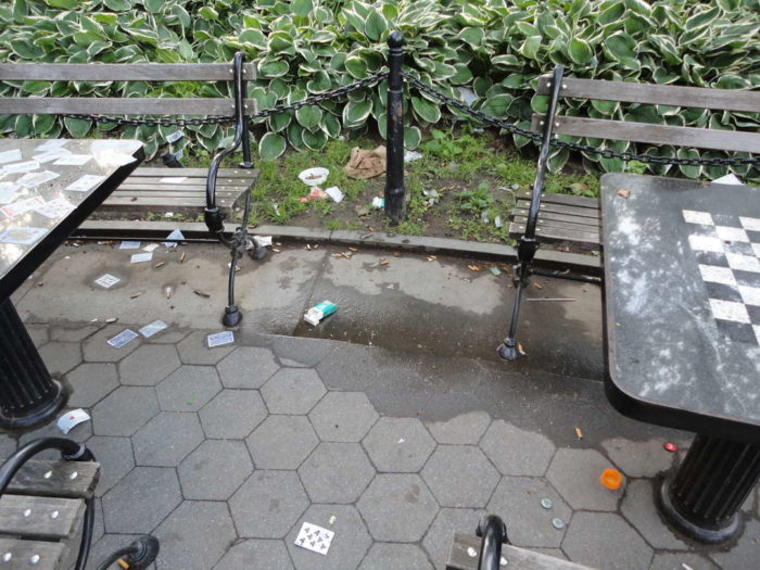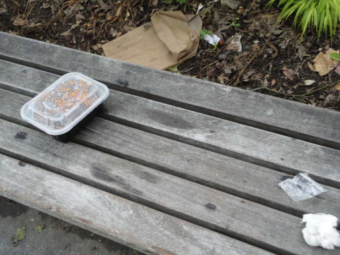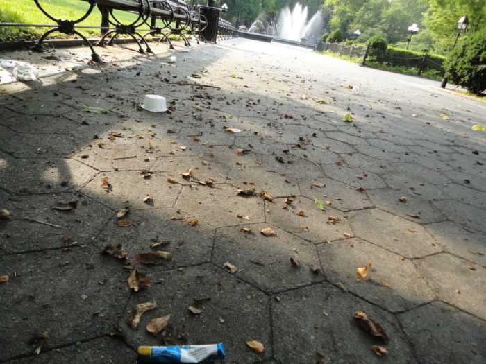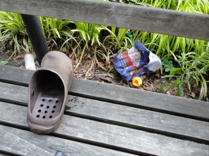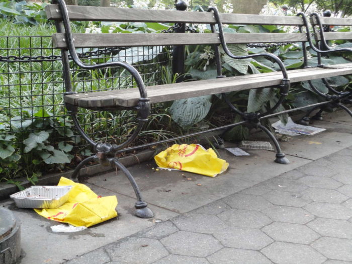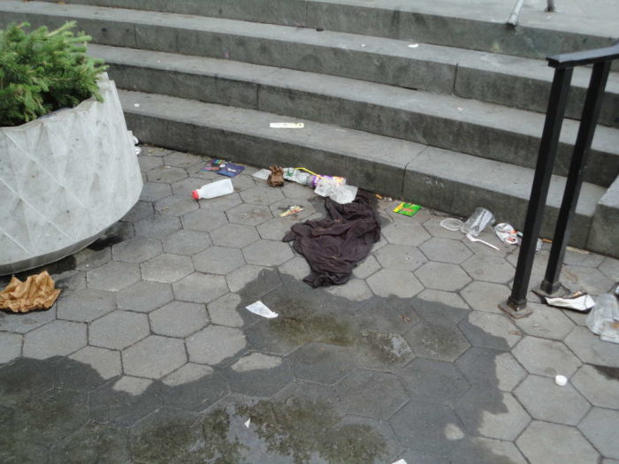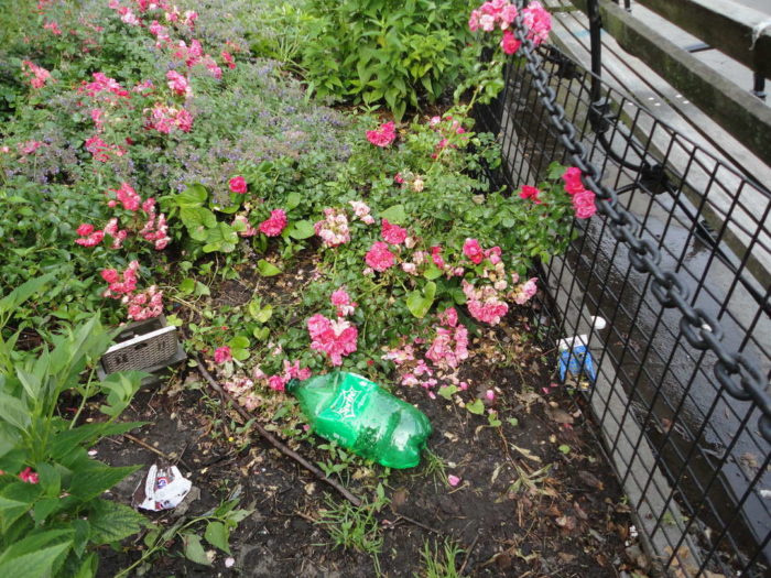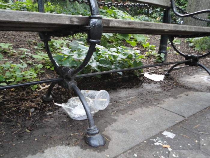 I live around the corner and have gone there daily without fail for over a year to pick up litter, forming relationships with some of the dealers and users. Mostly to perform what I consider a civic duty and what any member of a community would do. As best I can tell, I’m the only person who picks up litter, in contrast to the 75 percent at least who bring packaging that will become litter or contribute to overflowing trash cans whose contents spill out and become litter.