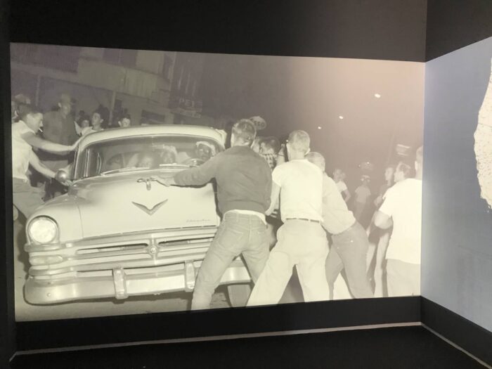 To the left of that map in the video was this image of a group of people at the top of a dominance hierarchy surrounding a few people at the bottom in a car. It looks beyond fearful for the people in the car. I don’t think it’s Jackie Robinson, but he must have known more about such possibilities than us today.