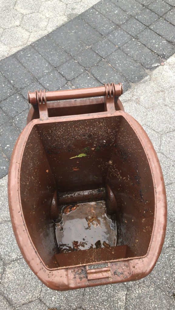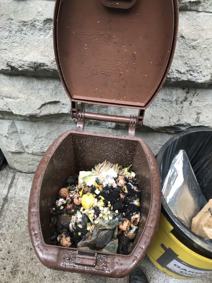 My compost at home accumulates much slower. I would take a year or more to accumulate how much the bin contained, so when I bring my own compost, it doesn’t smell or have bugs. I only bring it to the collection bins around monthly.