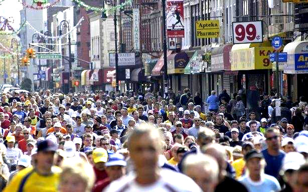 Two million people line the streets of the city to watch 45,000 competitors. Bands play. Children give runners high-fives. You will laugh. You will cry. You will see competitors in wheelchairs, who are blind, who use crutches, who are over 80 years old, who come from around the world. You will cheer with the most excited neighbors.