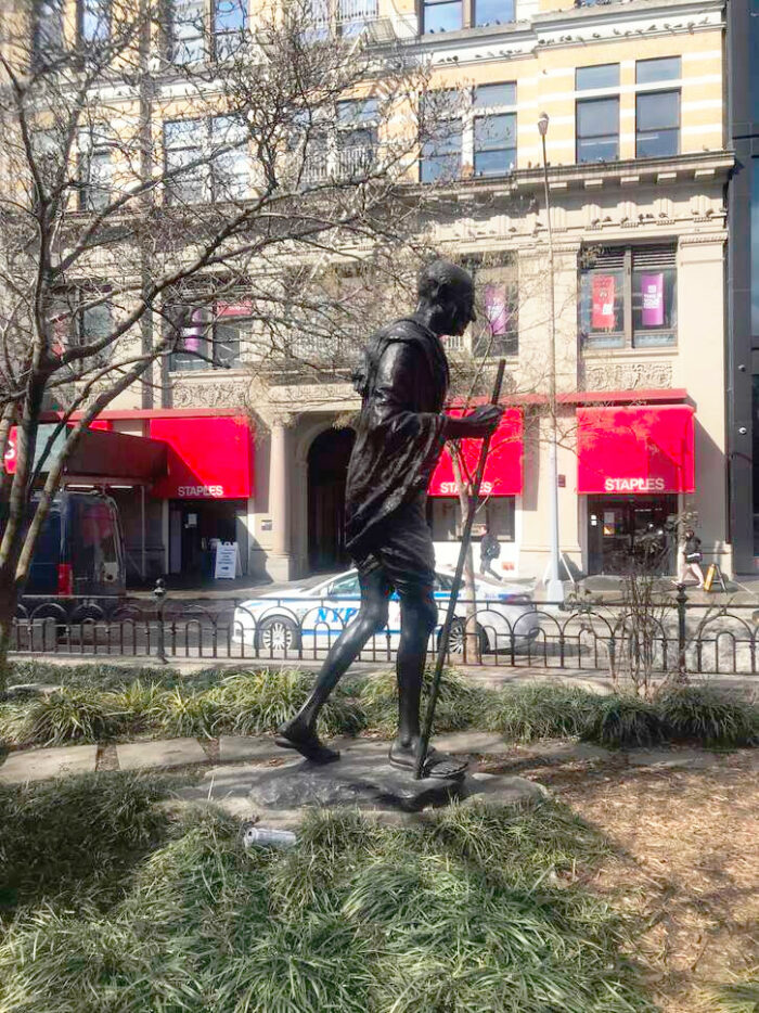 I recently watched Richard Attenborough’s Gandhi movie. I often pass the Gandhi statue around the corner from my home in Union Square. The other day I saw that someone honored Gandhi’s legacy with an empty beer can at his feet.