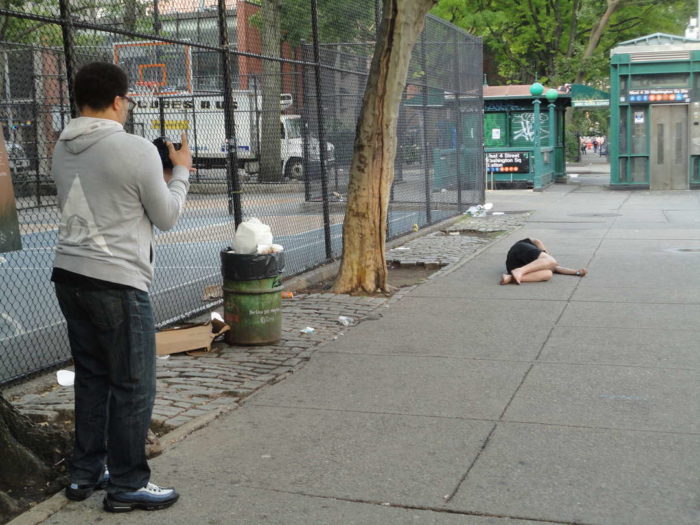 Here’s someone sleeping nearby, with the subway entrance in view: