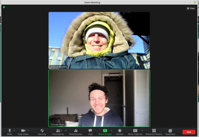 Here’s me on the roof on a video call while my solar panels charged my battery around the winter solstice, when I realized I’d made it past the hardest time, meaning I’d probably keep going the rest of the year. Then I’d likely keep going.